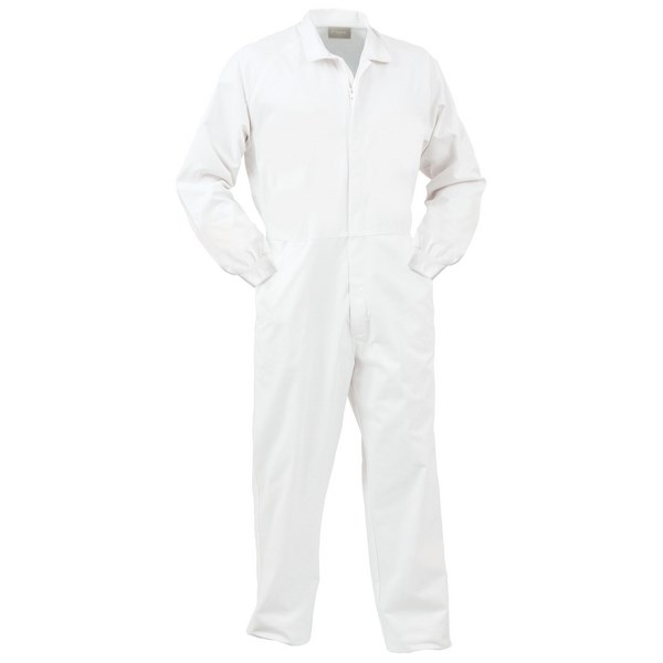 These white size 6 Argyle polycotton with nylon overalls are suitable for use in the food industry. It has a coil zip front with a twin stitched front and back rise with pockets.There is a protective placket over the zip closure with 2 internal hanging type trouser pockets. The food grade overall has an elastic back for comfort and complies with NZFSA IS/IAS3 guidelines.