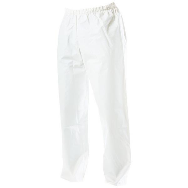 These Kaiwaka Food Grade PVC Trousers are an excellent way to keep dry and comfortable on the job. The trousers are constructed of waterproof PVC, great for protection against liquids, oils and fats. High frequency welded seams provide extra strength and durability. The trousers have an elasticated waistband for a secure, comfortable fit. Ideal for use in food production and processing industries and agricultural work environments.