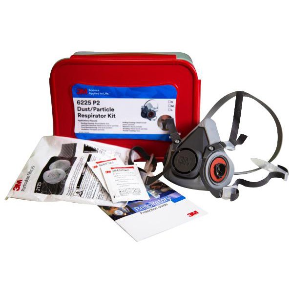 The 3M™ P2 Dust And Mist Particle Respirator Kit 6225 is the ideal safety solution when you need protection from particles, dust and fine powder created from sawing, sanding drilling, grinding, lead paint removal and food manufacturing and similar applications. The Dust And Mist Particle Respirator Kit comes complete with sealable storage container with red lid to keep all essential items together. Kit includes 1 x 3M™ Half Face Respirator 6000 Series, 1 x pair of P2 3M™ Particulate Filters 2125, 2 x 3M™ Respirator Cleaning Wipes 504, 1 x 3M™ Respiratory Protection Guide and 1 x handy storage container. Spare parts for 3M™ respirators are also available.