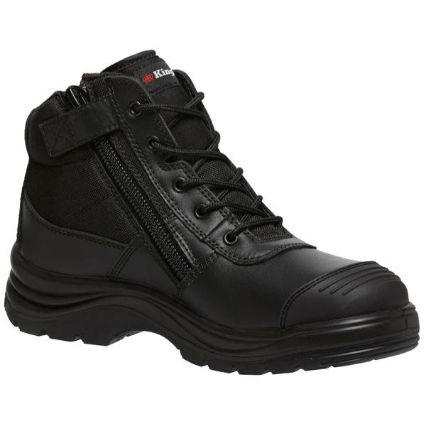 King Gee Tradie Safety Boots feature leather and breathable nylon uppers and Aegis anti-microbial Dri-lex lining. They ensure your toes are protected with the built-in steel toe cap and TPU toe bump. They feature a TPU outsole, PU midsole and memory foam foot bed with ARZ+ heel cushioning. The YKK 10 gauge coil zipper ensures they are quick and easy to put on and take off. They are fuel, oil and slip resistant, anti static and have 130 degree Celsius heat resistant outsoles.