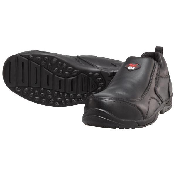 These Mack President Safety Shoes are a business styled slip-on shoe offering comfort, support and protection in the workplace. The water and slip resistant cowhide shoe has a gel footbed for heel and arch support with utmost comfort. The lace free design is ideal for work environments where laces can become a hazard or contaminated. Double gusset with Cambrelle lining provides easy access and durability. Metal-free composite toe cap for ease of movement and phylon midsole for shock absorption and cushioning. Ideal for light industry environments where you're on your feet throughout the day.