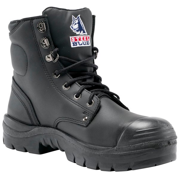 This Steel Blue Argyle Bump Cap Lace Up Safety Boot is a 150mm derby style lace up ankle work boot. It has a padded collar and tongue for extra comfort plus a 200J safety steel toe cap and a durable polyurethane bump cap. The upper is made of premium NZ leather for a quality boot with great water resistance. The TPU outsole is heat resistant to 130 degrees Celsius making it suitable for such as sandblasting, glazing and bricklaying.