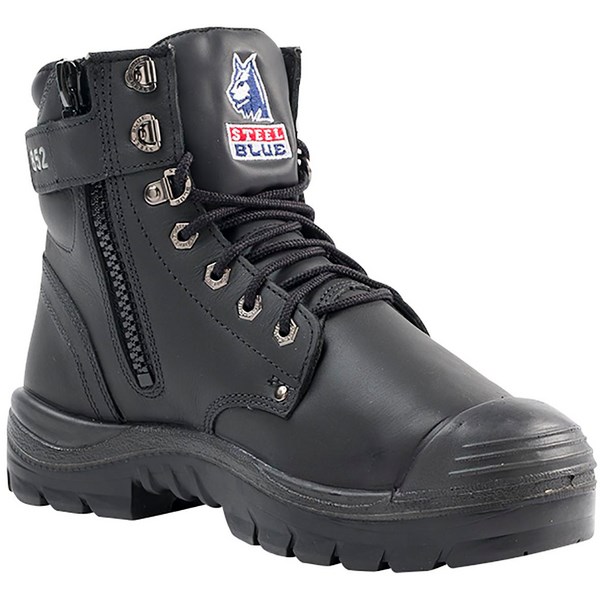The Steel Blue Argyle Zip Safety Boots are zip and lace-up ankle boots that have a padded collar and tongue plus bump cap. It is made from water-resistant leather and comes with a built-in Metatarsal Guard for impact protection to metatarsal bones found higher up in the foot. These boots features a penetration resistant midsole, durable polyurethane bump cap, and anti-static nitrile outsole that is heat resistant to 300 degrees Celsius.