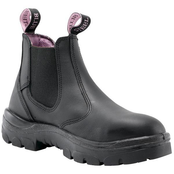 These Women's Steel Blue Safety Boots are a 120mm elastic sided slip on ankle boot designed for women. The boots feature a TPU outsole, heat resistant to up to 130 degrees Celsius. Steel toe cap provides excellent protection on the job. The Hobart boots are constructed from full grain, waxy Cowhide leather for durability and excellent water resistance. Great for construction, road working, scaffolding and more.