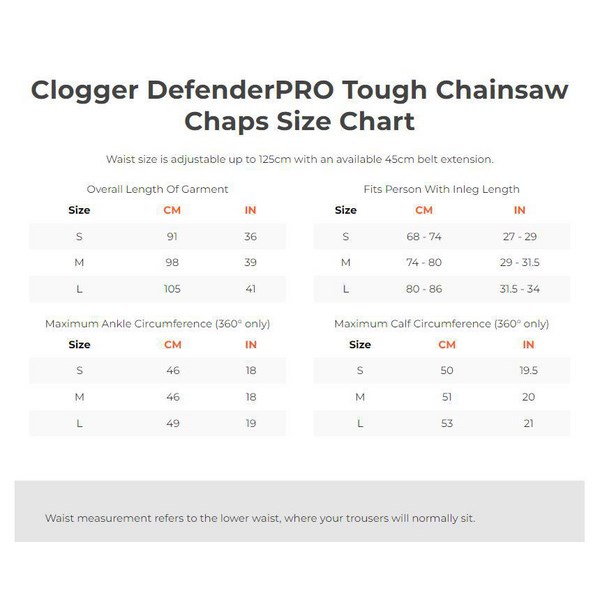These unisex Clogger DefenderPRO Tough Chainsaw Chaps are designed for tree workers working on the ground. These chaps are designed to be tough enough to withstand everything from blackberry to mud while still being light and comfortable to wear while on the job. These chaps bring together the latest in technical fabric and design and redefine long lasting and rugged. The outer fabric is constructed from a new grade of specially developed nylon for increased cut and abrasion resistance and feature oil and water-resistant coating. These chainsaw chaps are practical and comfortable and provide waist to ankle coverage and protection.