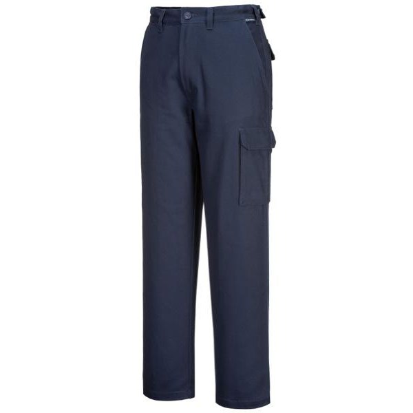 These Portwest Short Cargo Trousers are durable and comfortable work wear. The trousers feature reinforced stress points for strength, a metal zip and metal button closure, and an adjustable waist for a comfortable fit. The cargo pants are made from 100% cotton drill that is pre-shrunk. The trousers have two large back pockets with a touch tape closure, two deep hip pockets, a cargo pocket on the left leg and a ruler pocket to provide convenient storage.