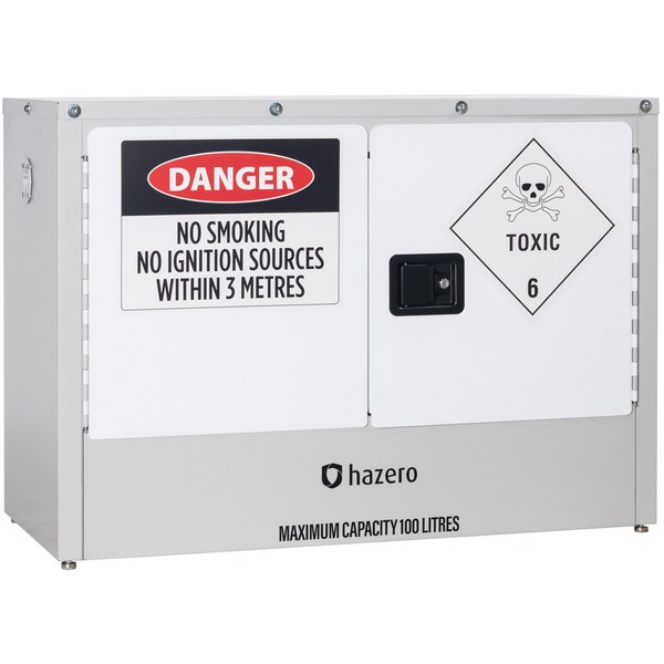 The Hazero Toxic Substance Storage Cabinet is designed to securely store Class 6 toxic and infectious substances, ensuring the safety of individuals. It is recommended to place these compact cabinets near handwashing facilities to promote safe work-hygiene practices. The cabinet features a lockable, non-spark closure, self-closing door, an adjustable perforated shelf, and a base for efficient storage.