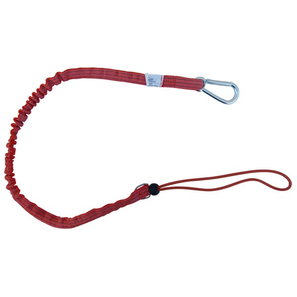 This lanyard has an elasticated webbing tool with nylon cord to attach to tools, including a plastic locking toggle. The strap is made of polypropylene with polyester and can support a maximum tool weight of 5kg.