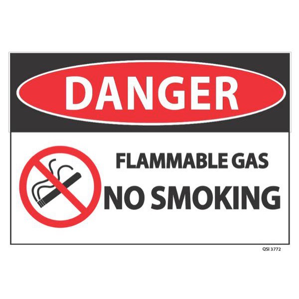 This Danger Flammable Gas No Smoking Safety Sign is designed to warn employees and visitors of hazards in the workplace. The bold red, black and white sign features text and image to help prevent smoking in dangerous areas. The safety sign is constructed of high quality plastic for strength and durability. UV treated plastic and UV resistant ink helps to ensure long life even in sun exposed and outdoor areas. Great for use in factories, manufacturing, warehousing, automotive industries and more.
