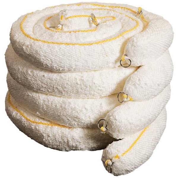 This Controlco spill sorbent boom is suitable for oil only and acts as your first line of defense when oil, diesel or another hydrocarbon spill gets into a waterway. Polypropylene is packed into a tough outer mesh that allows even the most viscose oil to be drawn right into the boom rather than just coating the outside. Each boom has an internal rope and clip system which allows the booms to be connected to create an effective barrier. Even after long periods of time when the boom is fully saturated it will remain afloat.