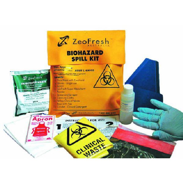 This Zerofresh Biohazard Spill Kit is suitable for anyone who deals with biohazards on a daily basis. It has all the essential items required for a biohazard spill. The contents include a facemask, gloves, apron, Zeofresh surgery absorbent powder, scoop and scrapper, cleaning clothes, waste bags and ties and clinidet. The dimensions of the spill kit measure 220x260x85mm and can easily be stored away when not in use.
