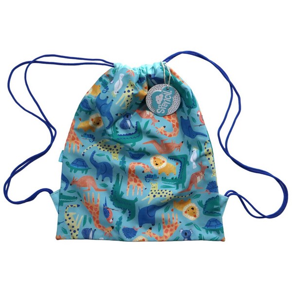 Designed for 3-5 year olds, the Spencil Safari Puzzle Junior Drawstring Sports Bag is big enough to fit all their stuff, but small enough for them to carry. The functional single pocket, drawstring design makes this bag quick and easy to pack, open and close for little hands and busy mornings. This go-anywhere, carry-all, multi-purpose bag has any occasion covered. Its eye-catching cute animals Safari Puzzle design is sure to wow young kids. It is also made with a water-resistant lining, making it perfect for sport, swimming, and other outdoor adventures.