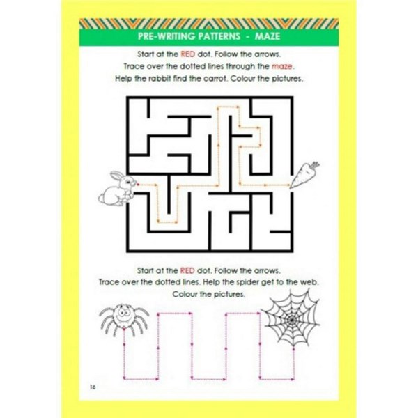 • Features Alphabet and Numbers, Colouring and Illustrations, Copy and Trace, Letters and Numerals, Directions and Movements, Patterns and Shapes, Pictures, Maze, and much more