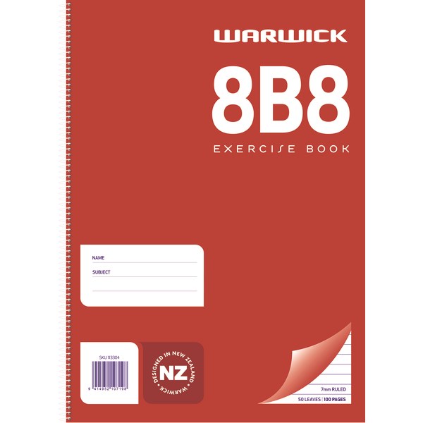 This Warwick 8B8 Spiral Exercise Book is great for recording notes, homework, exercises, drafts, thoughts and ideas. The soft covered, spiral bound exercise book has 50 leaves with 7mm ruled lines. Excellent for school, study, for use in the office and at home.