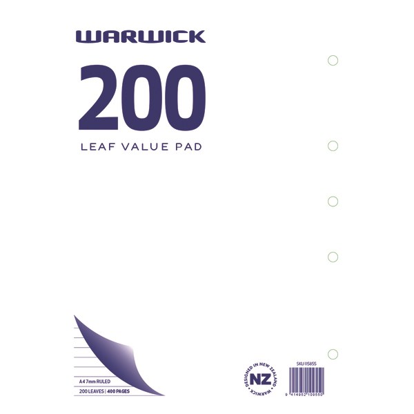 This Warwick A4 Ruled Value Lecture Pad is ideal for recording meeting notes, lecture notes, thoughts, ideas, drafts and more. The handy pad keeps paper together until you are ready to separate it. The pad has 200 leaves with 7mm ruled lines. Multi-punched for use in 2, 3 or 4 ring binders. Great for use in the office, workplace, schools and universities.