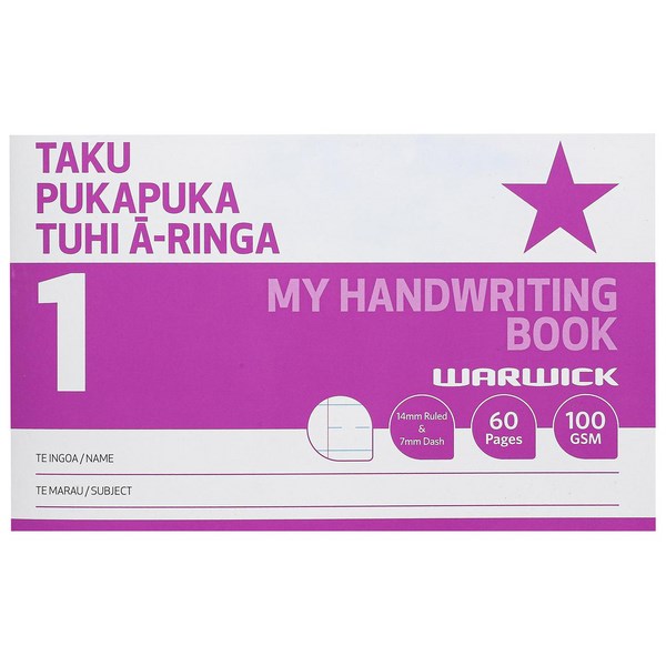 This Warwick Taku Pukapuka Tuhi - Ā -Ringa Handwriting Book is designed for students to practice their writing and spelling. Each page features ruled and dashed lines that aid with letter writing and learning. It includes reference material on letter formation, a pencil holding guide and space to practice letter finger tracing.