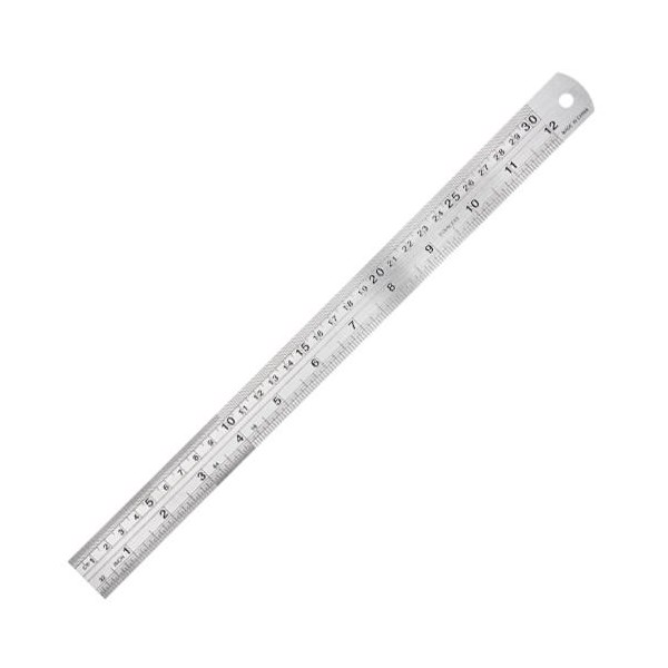 This 30cm Steel Ruler is the perfect size for use at home or in the workplace. The back and front of the ruler have graduations etched in millimetres and centimetres on the top and inches on the bottom of the ruler. The sturdy metric/imperial ruler is the perfect size to slip into your school bag or large pencil case.