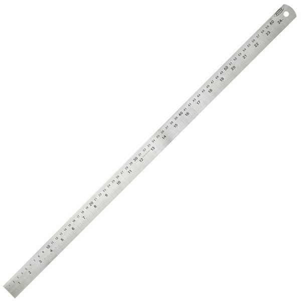 This 60cm Steel Ruler is the perfect size for use at home or in the workplace. The back and front of the ruler have graduations etched in millimetres and centimetres on the top and inches on the bottom of the ruler. The sturdy metric/imperial ruler is the perfect size for use in the classroom or in commercial or industrial workplaces.