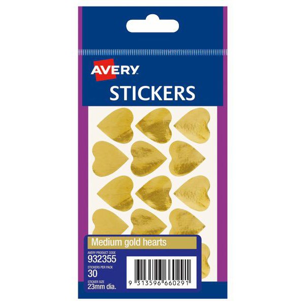 These Avery Hearts Stickers are a great way to reward excellent work, record progress on progress charts and to add shimmer and shine to arts and crafts projects. The pack of 90 hearts feature metallic gold paper backed with permanent adhesive. Ideal for use in schools, offices and at home.