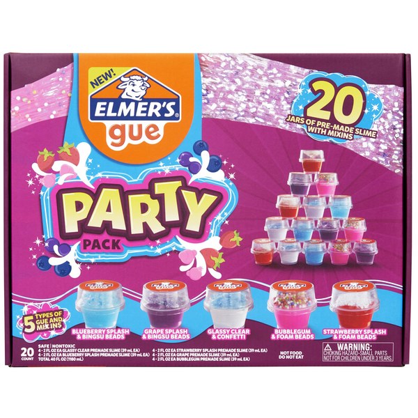 Have some slimy fun with this Elmer's Gue Slime Kit. Each jar of slime comes with its own unique set of mix-ins for additional effects and texture. The slime is safe and nontoxic, making it great for classrooms, parties and gatherings with family and friends.
