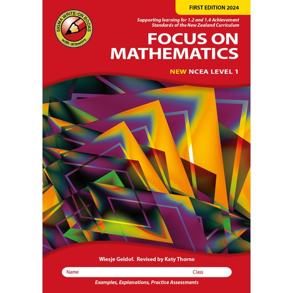 Sigma’s new NCEA Level 1 workbook series provides excellent coverage of the Mathematics option for the new revised 2024 curriculum. Pages feature maths instruction boxes, worked examples and a full set of answers.