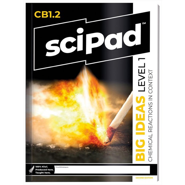 The SciPad CB 1.2 Big Ideas Level 1 workbook covers all the content of the AS 92021 unit of the Chemistry & Biology curriculum. The book is full colour and has an A4 format. Covers Chemistry & Biology 1.2 - Demonstrate understanding of a chemical reaction in a specific context.