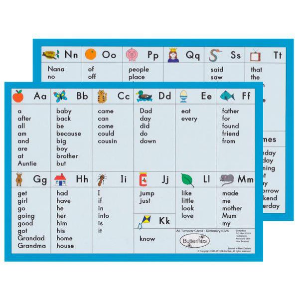 Make learning fun with the Butterflies Dictionary Card, which assists kids with speech and language, cognitive ability skills and object manipulation. This durable double sided card features the alphabet and high frequency words, and is a great tool for use in the classroom.