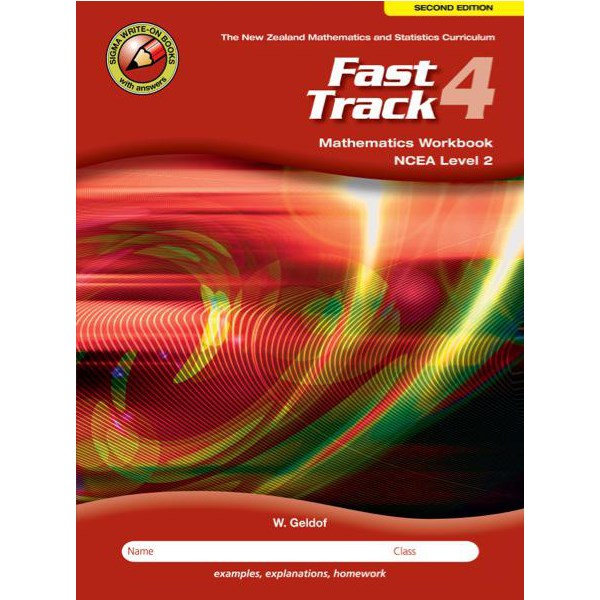 Fast Track 4 Second Edition is a write-on student workbook that provides a comprehensive study programme for students wishing to sit any combination of the NCEA Level 2 Mathematics Achievement Standards 2.1, 2.2, 2.3, 2.4, 2.6, 2.7, 2.9, 2.12 and 2.14. It contains 220 pages and covers NCEA Level 2 standards worth a total of 30 credits. Instruction boxes and worked examples appear on almost every page, as well as a revision test at the end of each chapter and removable answers.