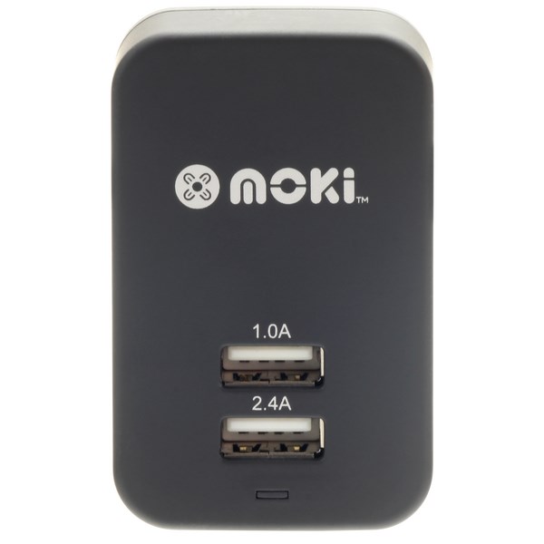 Designed for home or office use, this Moki Dual USB Wall Charger features two USB-A ports with a total output of 3.4A (5V), ideal for charging smartphones, tablets, wireless speakers, headphones, and other portable devices.