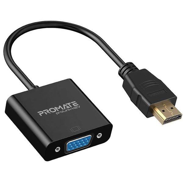 The Promate HDMI Male to VGA Female Display Adapter allows seamless streaming from HDMI devices like Chromecast and Apple TV to VGA displays, including projectors and TVs. It requires no external power, supports Full HD video, and features a gold-plated connector for enhanced signal quality. Compatible with Windows, Mac, and iOS systems.
