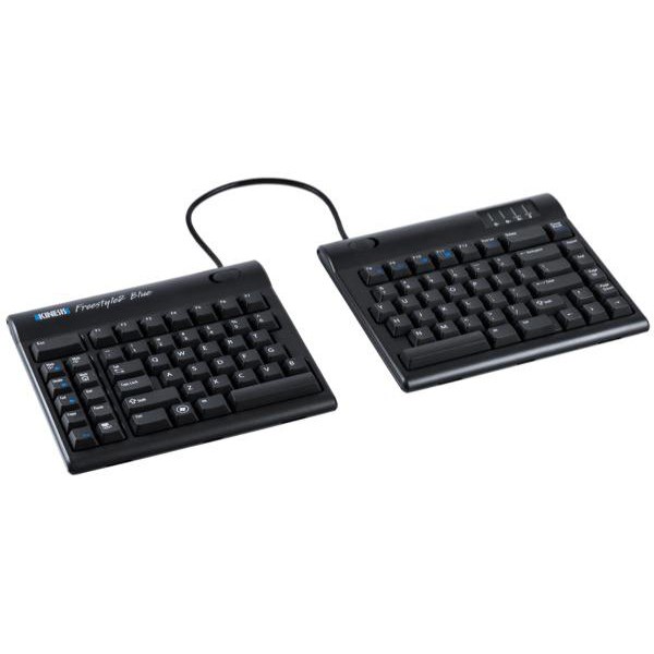 •Left and right sections are connected by a flexible pivot tether to splay keyboard