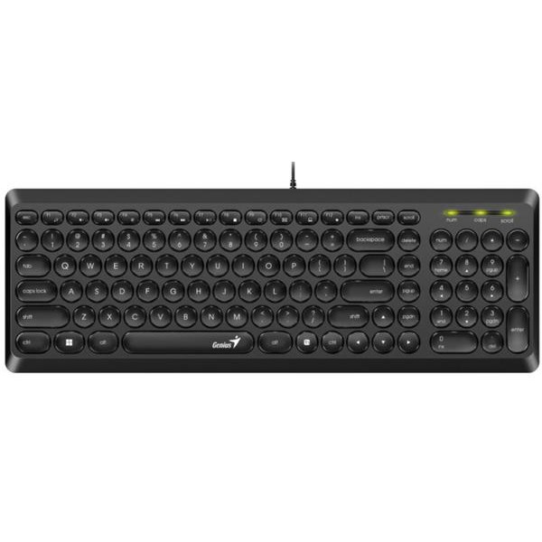 The Genius Slimstar Q200 Multimedia Keyboard has round shaped keys which provide an extraordinary, comfortable and whisper-quiet typing experience.