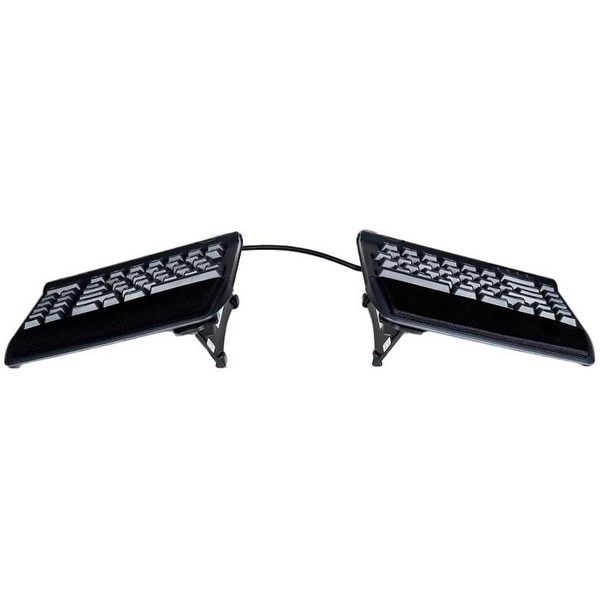 The Kinesis Freestyle 2-09 Combo Wired Keyboard offers an optimal comfort with two modules connected by a flexible pivot tether for adjustable splay. Its unique “A” shape promotes a natural hand position, reducing ulnar deviation. Each module can be separated, and the keyboard includes Kinesis tenting accessories with 5-, 10- and 15-degree options and palm rests.