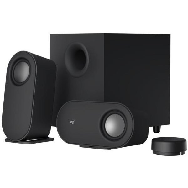 These Bluetooth Logitech Speakers have 80 watts of power and precise digital signal processing (DSP) to deliver immersive, lifelike sound. Hear the crisp high notes, the powerful mid and low-range, and all the bass you can handle. The wireless control dial and dual-position speakers let you control your sound and style. Adjust bass and volume from across the room. Position speakers horizontally or vertically. Connect via Bluetooth, micro USB, 3.5mm input, or all three- easily switch between them. Works with enabled Bluetooth devices including TVs, game consoles, tablets and computers.