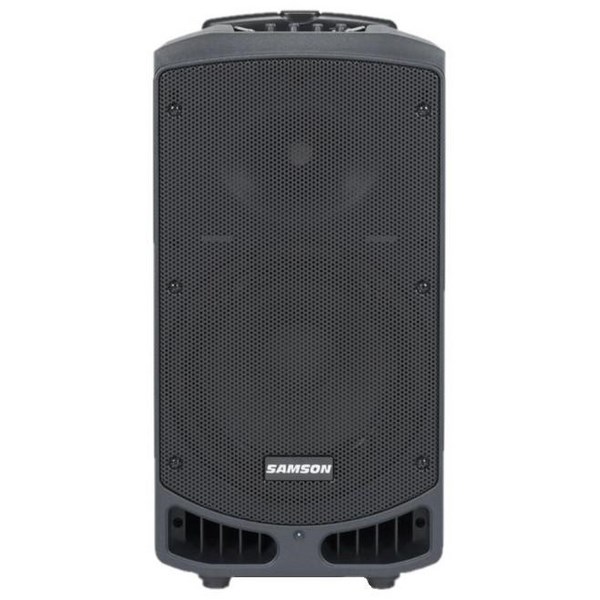 The Samson ESAXP310W is a rechargeable portable PA system with a 300-watt output and 12-hour battery life. It has Bluetooth connectivity, a 4-channel mixer, and comes with a wireless microphone. The system is lightweight at 27.5 lbs and has LED indicators for battery level and charging. The Class D amplifier delivers 300 watts of peak power.