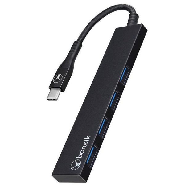 Bonelk Long-Life USB-C to 4 Port USB-A 3.0 Slim Hub Black