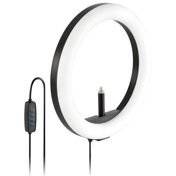 Kensington’s L1000 Bicolour Ring Light With Webcam Mount is an affordable, feature-rich lighting solution for quickly enhancing the way you look on video conference calls. The ring light provides optimum brightness for office environments and the ability to mount your webcam in the centre of the ring for consistently perfect light distribution. Bicolour LEDs mimic lighting scenarios from sunrise to sunset, push button controls easily adjust brightness and a ball joint mount offers flexible positioning. This light ring requires no power supply - simply attach to any open USB-A port (5V/2.0A) on your computer, docking station or other powered devices.