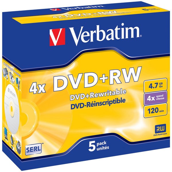 Verbatim DVD+RW offers 4.7GB or 120 Minutes of rewritable storage capacity, superior recording quality, and compatibility with 1X to 4X DVD+RW writers. Verbatim 4X DVD+RW is ideal for archiving or backing up 4.7GB of data or 120 minutes of DVD-quality video.