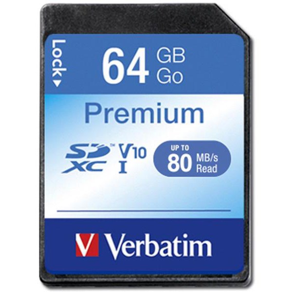The Verbatim SDXC Memory Card is great for conveniently storing your photos, music, documents and more in one place. It features copyright management technology to help keep all your files protected and a class 10 data transfer speed. The memory card has a generous 64GB capacity and is compatible with digital cameras, portable music players, camcorders, smart phones, PC's and other consumer applications.