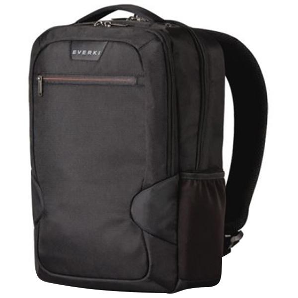 The Everki Studio Slim Laptop Backpack was designed for business professionals. It has two separate padded, felt-lined pockets that provide safe, secure storage of electronic devices. Both pockets are easily accessible with reinforced corner guards for extra protection. The bag also has a second zip compartment with plenty of pockets and slots for carrying items such as business cards and pens. There is also a smaller outer compartment and two waist-level water bottle pockets.
