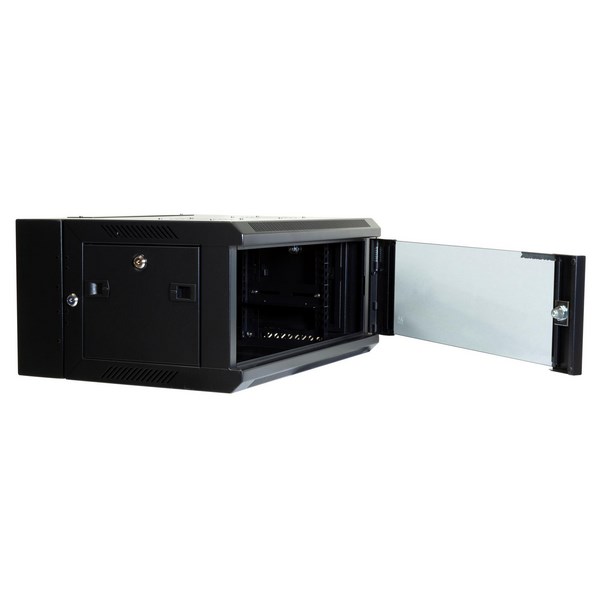 This Dynamix 4RU Universal Swing Wall Mount Cabinet is designed to hold network equipment on a wall at height. It has a unique drop in fan tray to make future servicing a breeze and bonding earth wire for front door and back mount. For ease of access there is a reversible safety glass front door and removable side panels, all lockable with a universal key. The cabinet conveniently comes with a 6 way PDU and cage nuts for installation.
