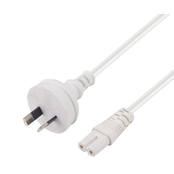 The Dynamix Power Cord 2 Pin Plug to IEC C7 Figure 8 Connector is an SAA-approved 7.5A power cord. This power cord is commonly used for small or low powered appliances and electronics. It has a 2-Pin main plug and an IEC C7 (Figure 8) connector on the other end. The IEC C7 (Figure 8) connector has two round prongs that fit into the corresponding slots of a power outlet. The cord measures 2 metres long and has a 0.75mm copper core.