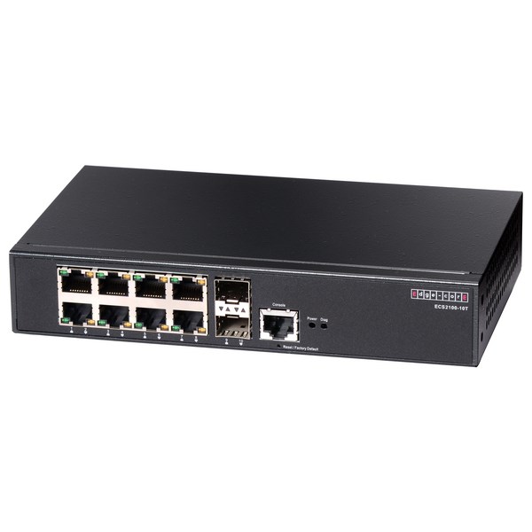 The Edgecore ECS2100-10T is a web-smart switch designed for the SMB market and can be deployed in different target network topologies, from small to large. The Edgecore ECS2100-10T supports x8 10/100/1000BASE-T ports, with each switch supporting x2 Gigabit SFP ports. As well as IPv4 and IPv6 features, the ECS2100-10T supports L3 static routeing. The switch also includes the best green-saving technologies (IEEE 802.3az and Green-Ethernet). Using the Energy Efficient Ethernet standard, the switch automatically decreases power usage when network traffic is low.