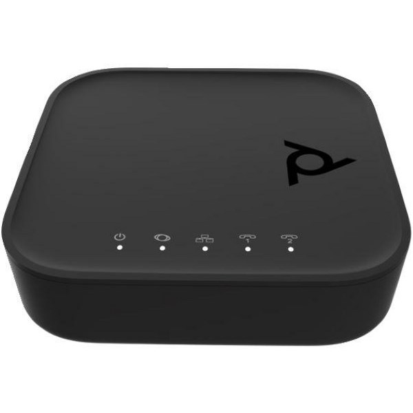 The Poly Voice Port VoIP Adapter enhances your analogue phone by enabling VoIP calling with the Poly series, allowing for a smooth transition from traditional telephone to a digital network. It features two FXS ports for calls and faxes via SIP and T.38 services and includes a PC port for additional connectivity.