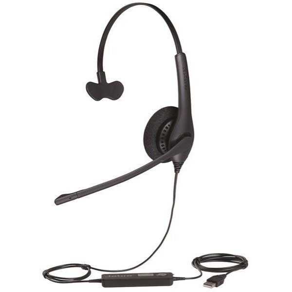 Choose this Jabra BIZ 1500 Mono USB Wired Headset for an excellent, entry level hands-free calling solution. Durable construction and tough design. Noise cancelling microphone technology reduces background noise for professional call quality. The low cost headset is designed for comfortable all day wear with foam ear cushions and flexible boom mic arm. USB volume and mute controller. Great for call centres and office environments.