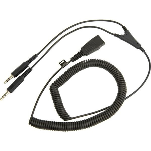 The Jabra QD Mini Phone Curly Audio Cable features a quick disconnect audio connector and two mini phone connectors. The female curly audio cable is 2 metres in length.