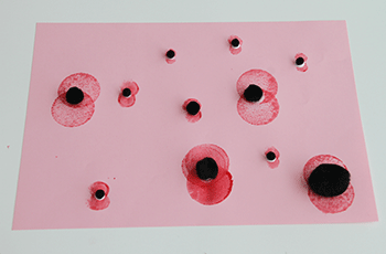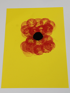 • Use a paint stamper and pad to create a poppy shape (two cirlces on top of each other)