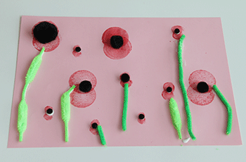 • Use a paint stamper pad and your fingerprint to create different sized poppies (two cirlces on top of each other)