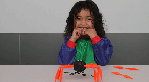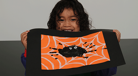 Place paint handprints palm to palm on top of the spider's web to create the spider’s body