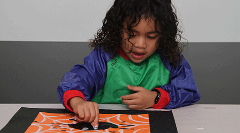 When dry glue the paper with the spider web onto a larger piece of paper to create a border